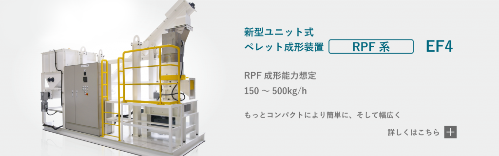 廃プラスチック類、紙屑、木屑、繊維屑等からペレットを成形する機械です。