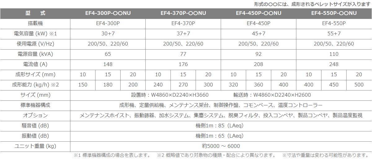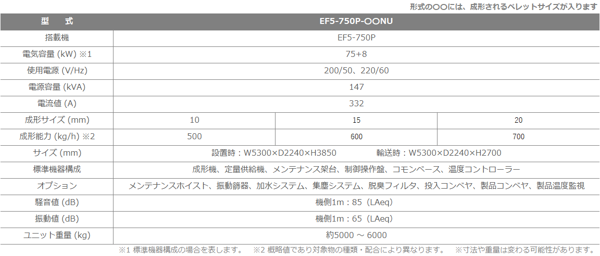 廃プラスチック類、紙屑、木屑、繊維屑等からペレットを成形する機械です。