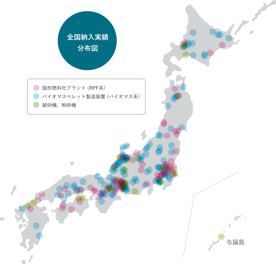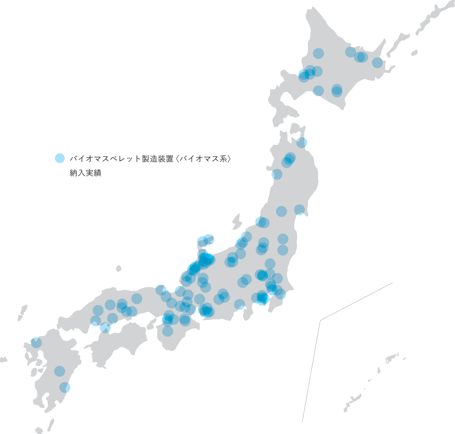 日本国内における納入実績を地図上にプロットさせていただきました。ご一覧ください。